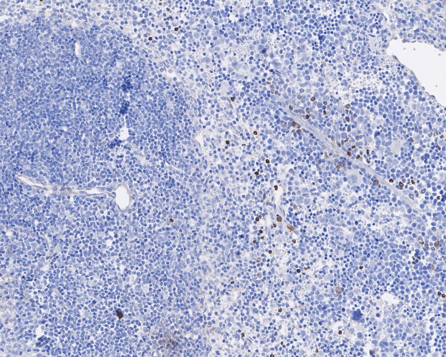 Immunohistochemical analysis of paraffin-embedded mouse spleen tissue with Rabbit anti-PADI4 antibody (HA721657) at 1/200 dilution.