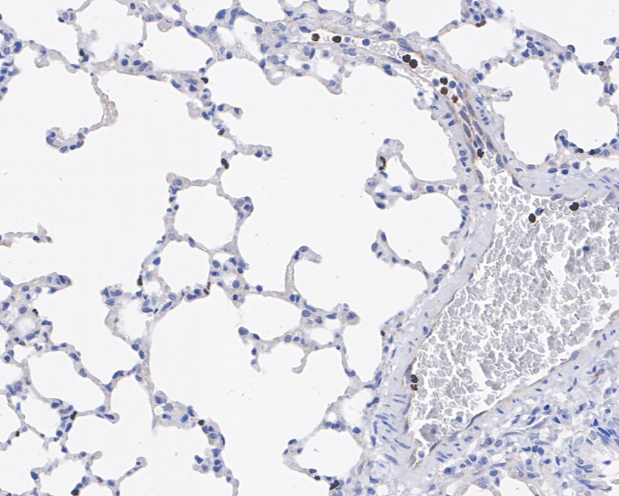 Immunohistochemical analysis of paraffin-embedded rat lung tissue with Rabbit anti-PADI4 antibody (HA721657) at 1/200 dilution.