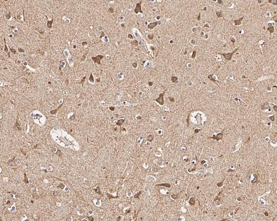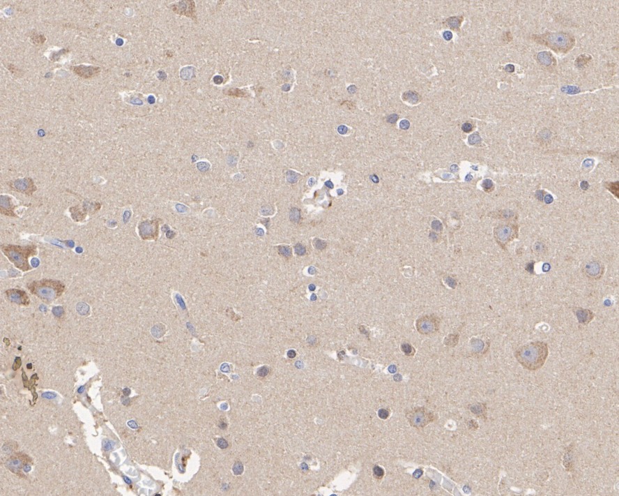 Immunohistochemical analysis of paraffin-embedded human brain tissue with Rabbit anti-PI3 Kinase p110α antibody (ET1606-36) at 1/50 dilution.