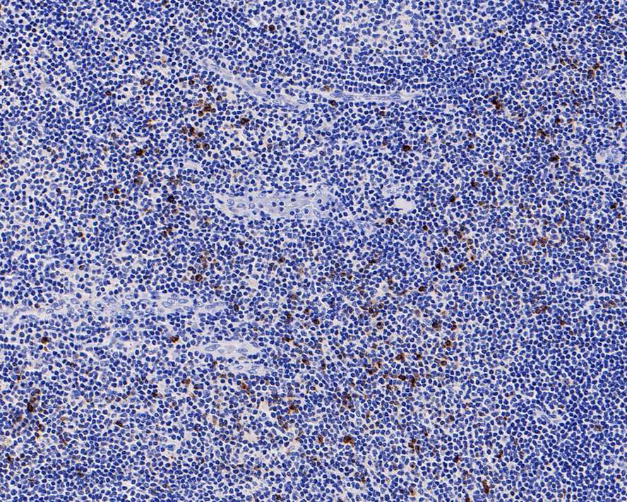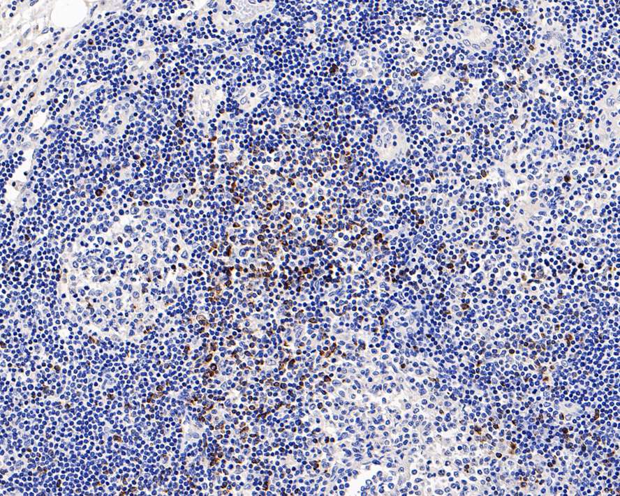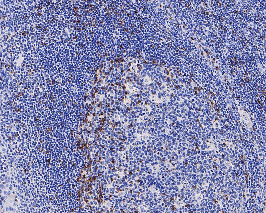 Immunohistochemical analysis of paraffin-embedded human lymph nodes tissue with Rabbit anti-CTLA-4 antibody (HA721269) at 1/1,000 dilution.