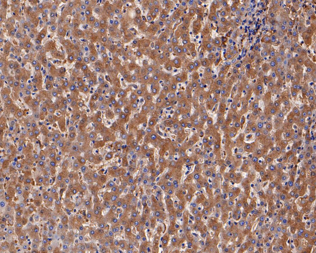 Immunohistochemical analysis of paraffin-embedded human liver tissue with Rabbit anti-A2M antibody (ET1703-69) at 1/200 dilution.
