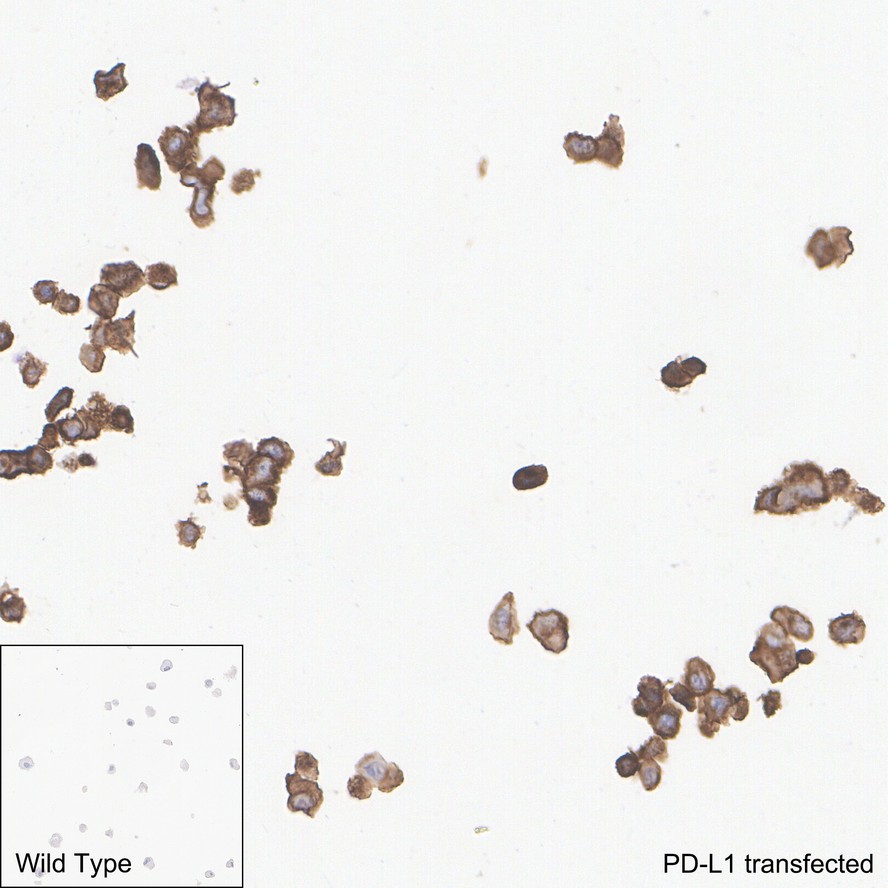 Immunohistochemical analysis of paraffin-embedded BCMT cells transfected with PD-L1 with Rabbit anti-PD-L1 antibody (HA722971) at 1/5,000 dilution.