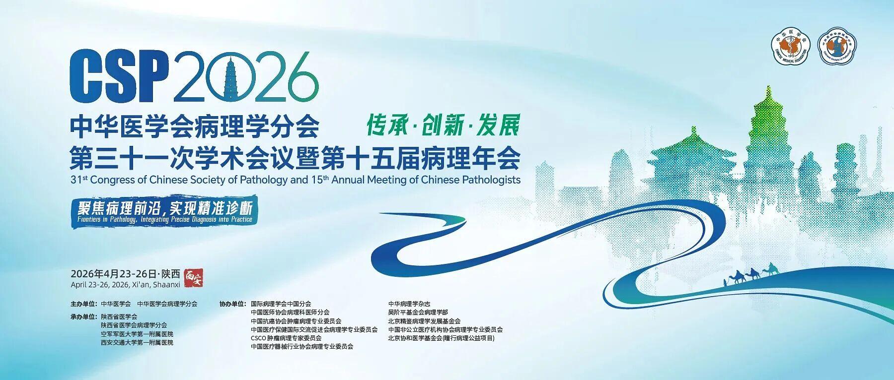 由中华医学会、中华医学会病理学分会主办,陕西省医学会、陕西省医学会病理学分会、空军军医大学第一附属医院、西安交通大学第一附属医院承办,国际病理学会中国分会、中国医师协会病理科医师分会、中国抗癌协会肿瘤病理专业委员会、中国医疗保健国际交流促进会病理学专业委员会、CSCO肿瘤病理专家委员会、中国医疗器械行业协会病理专业委员会、中华病理学杂志、吴阶平基金会病理学部、中国非公立医疗机构协会病理学专业委员会、北京精鉴病理学发展基金会、北京协和医学基金会(瞳行病理公益项目)协办的中华医学会病理学分会第三十一次学术会议暨第十五届病理年会将于2026年4月23~26日在陕西省西安国际会展中心举行。