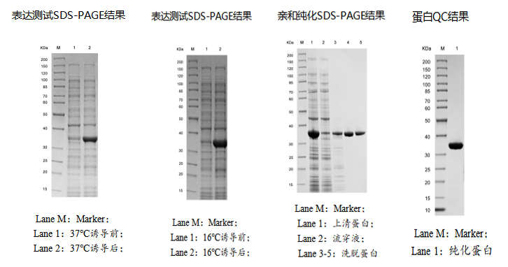 | 扩大培养及蛋白纯化 | 1mg 纯化蛋白,SDS-PAGE 检测图 | 7-10 个工作日 | |