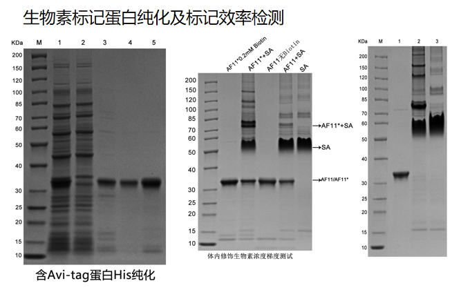 案例3:针对特殊需求,我们提供定制化服务,包括多标签组合表达、共表达辅助蛋白等,确保满足客户的多样化要求。如在序列中添加Avi-tag,并对蛋白进行生物素修饰,最终得到修饰效率大于95%的高纯度蛋白。