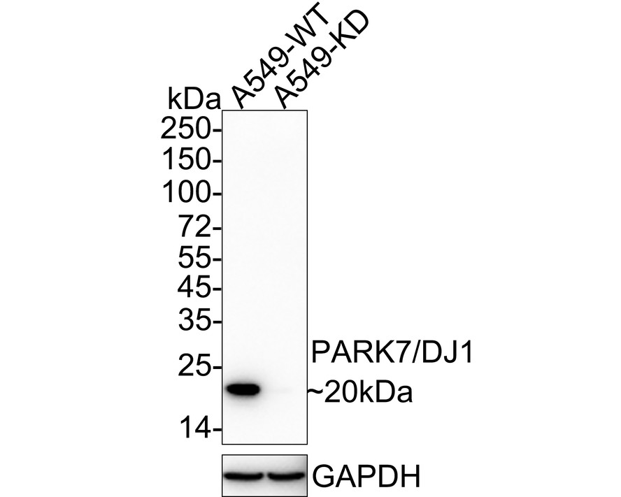 Lane 2: A549-si PARK7/DJ1 cell lysate