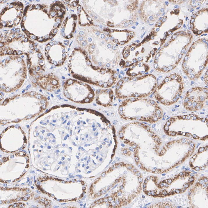 Immunohistochemical analysis of paraffin-embedded human kidney tissue with Rabbit anti-BDH1 antibody (HA723667) at 1/200 dilution.