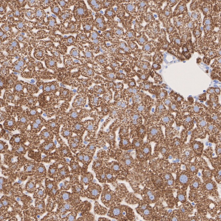 Immunohistochemical analysis of paraffin-embedded mouse liver tissue with Rabbit anti-BDH1 antibody (HA723667) at 1/1,000 dilution.