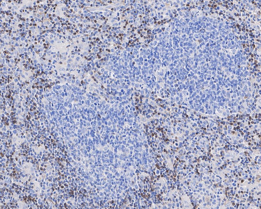 Immunohistochemical analysis of paraffin-embedded human b-cell lymphoma tissue with Mouse anti-Bcl-2 antibody (HA610131) at 1/500 dilution.