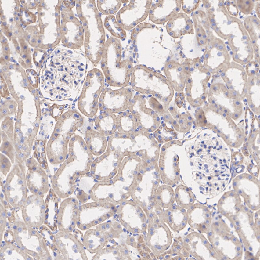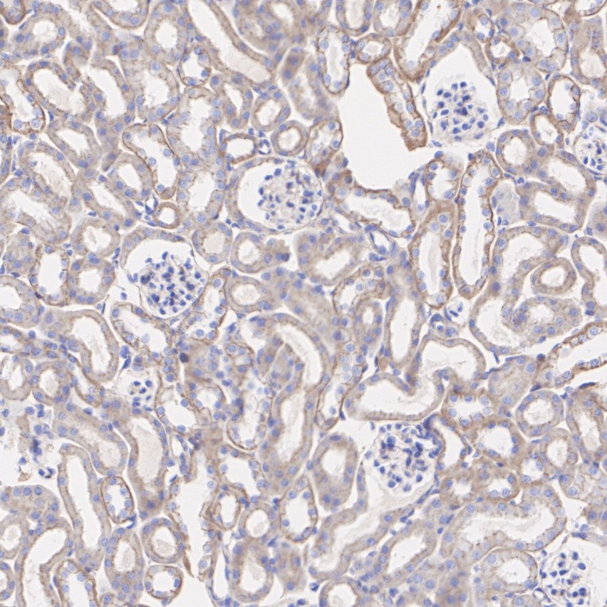 Immunohistochemical analysis of paraffin-embedded rat kidney tissue with Mouse anti-Beta Catenin antibody (HA601179) at 1/20,000 dilution.