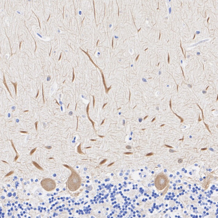 Immunohistochemical analysis of paraffin-embedded rat cerebellum tissue with Rabbit anti-Beta III Tubulin antibody (HA751554) at 1/4,000 dilution.