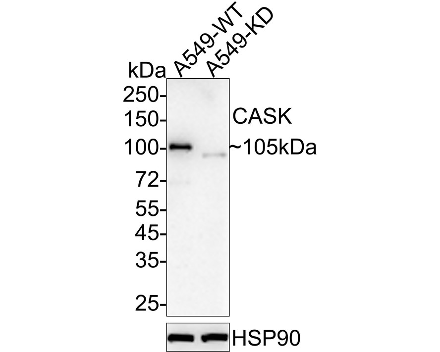 Western blot analysis of CASK on different lysates with Mouse anti-CASK antibody (EM1902-09) at 1/2,000 dilution.