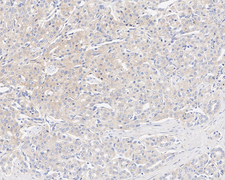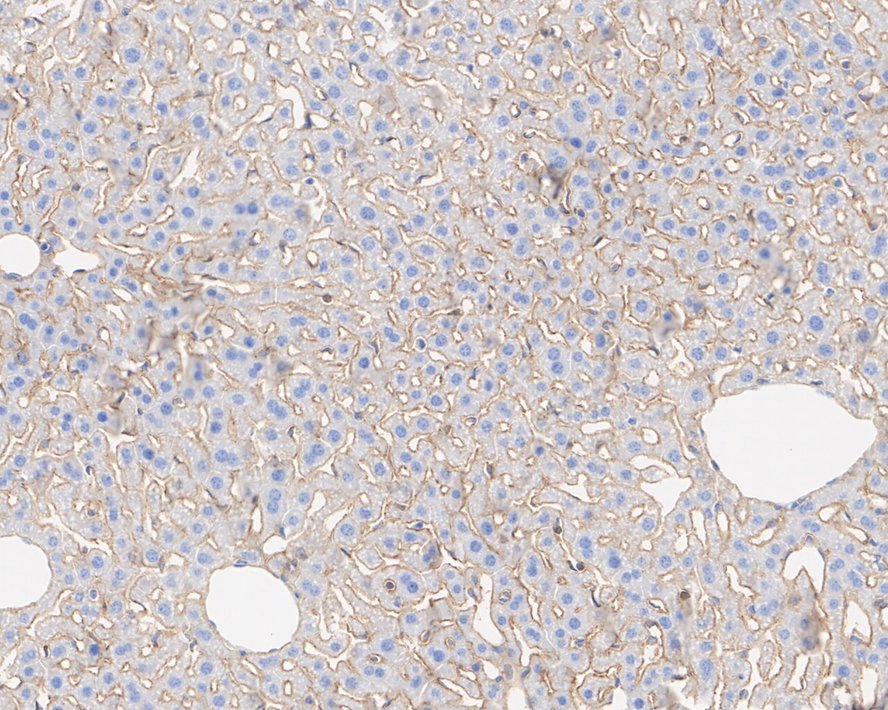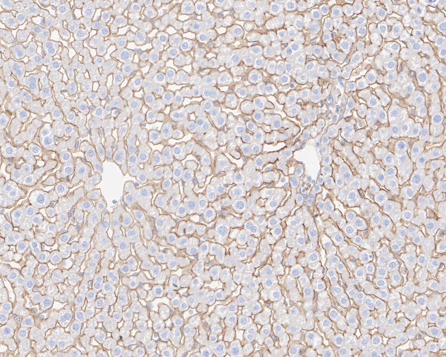 Immunohistochemical analysis of paraffin-embedded mouse liver tissue with Mouse anti-CASK antibody (EM1902-09) at 1/2,000 dilution.