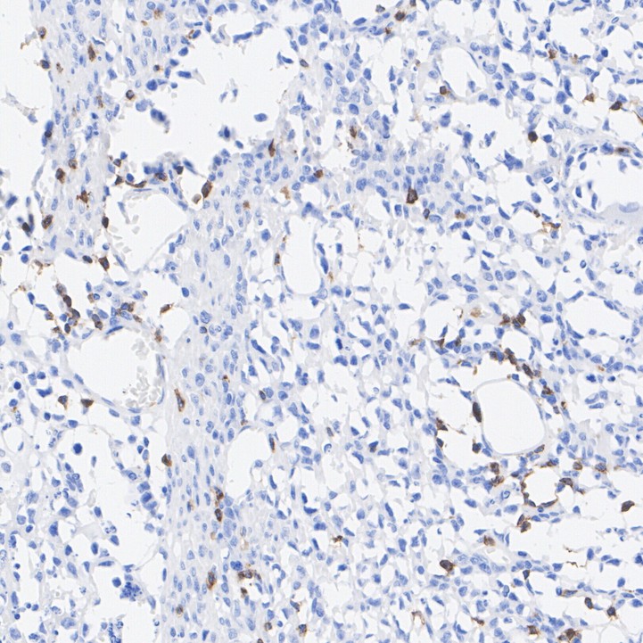 Immunohistochemical analysis of paraffin-embedded human T cell lymphoma tissue with Rabbit anti-CD2 antibody (HA722483) at 1/1,000 dilution.