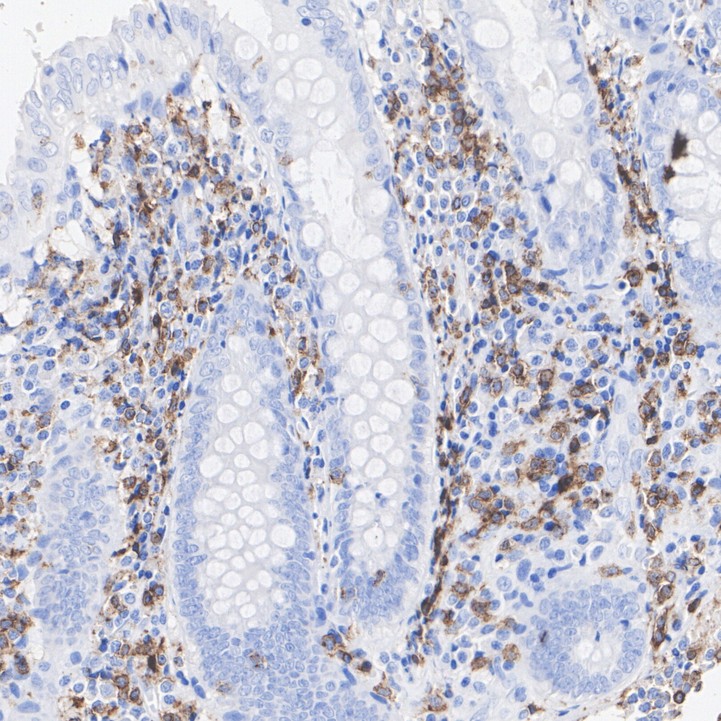 Immunohistochemical analysis of paraffin-embedded human appendix tissue with Rabbit anti-CD2 antibody (HA722483) at 1/1,000 dilution.
