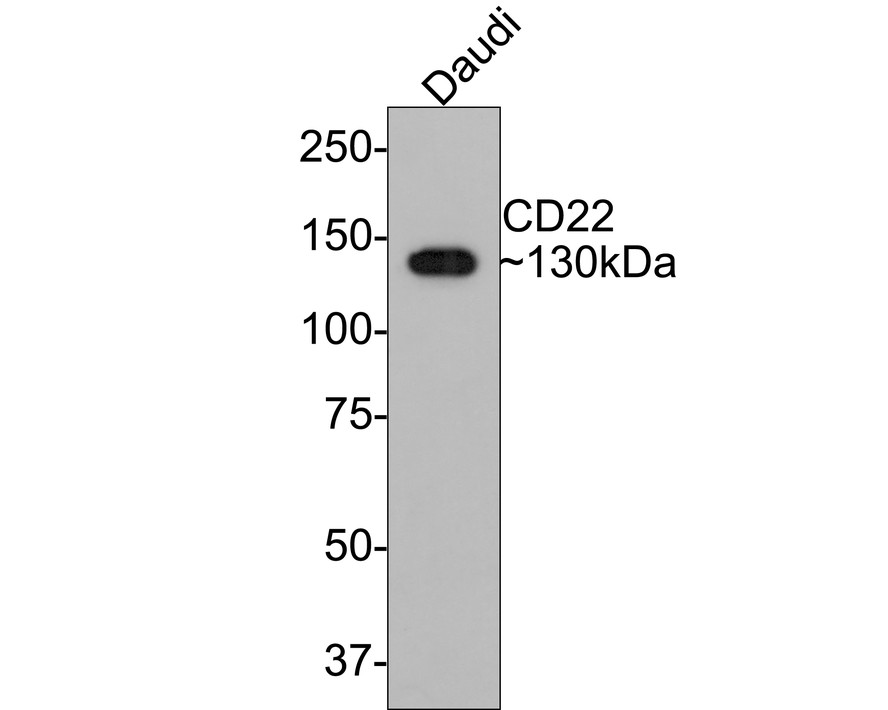 Western blot analysis of CD22 on Daudi cell lysates with Rabbit anti-CD22 antibody (HA721157) at 1/1,000 dilution.