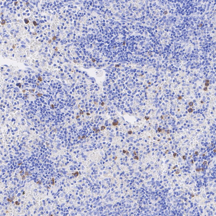 Immunohistochemical analysis of paraffin-embedded rat spleen tissue with Rabbit anti-CD3 antibody (HA724302) at 1/5,000 dilution.