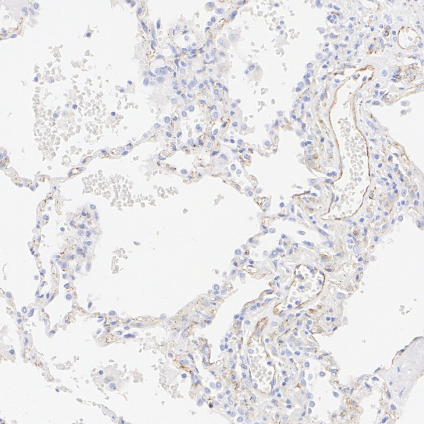 Immunohistochemical analysis of paraffin-embedded rat lung tissue with Rabbit anti-CD31 antibody (HA751751) at 1/4,000 dilution.