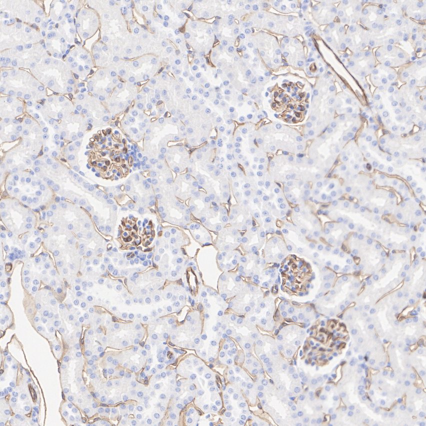 Immunohistochemical analysis of paraffin-embedded mouse kidney tissue with Rabbit anti-CD31 antibody (HA751751) at 1/8,000 dilution.