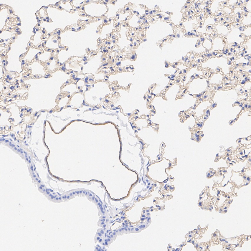 Immunohistochemical analysis of paraffin-embedded mouse lung tissue with Rabbit anti-CD31 antibody (HA751751) at 1/4,000 dilution.