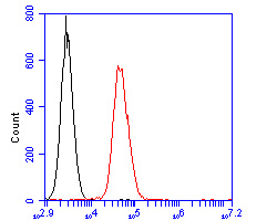 Flow cytometric analysis of CD35 was done on Daudi cells. The cells were fixed, permeabilized and stained with the primary antibody (ER2001-14, 1/100) (red). After incubation of the primary antibody at room temperature for an hour, the cells were stained with a Alexa Fluor 488-conjugated goat anti-rabbit IgG Secondary antibody at 1/500 dilution for 30 minutes.Unlabelled sample was used as a control (cells without incubation with primary antibody; black).