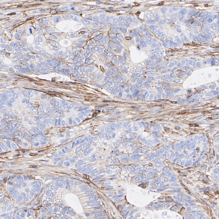 Immunohistochemical analysis of paraffin-embedded human colon cancer tissue with Rabbit anti-CD44 antibody (ET1609-74) at 1/1,000 dilution.