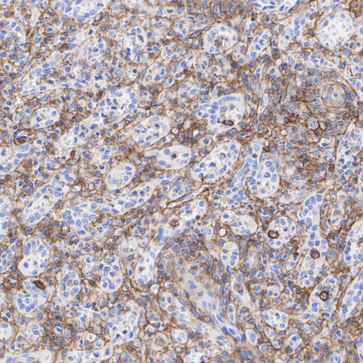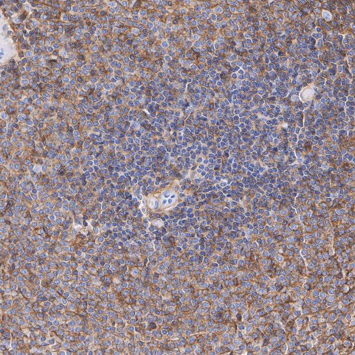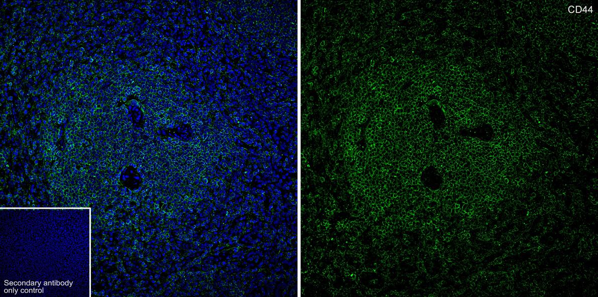 Immunohistochemical analysis of paraffin-embedded human spleen tissue with Rabbit anti-CD44 antibody (ET1609-74) at 1/1,000 dilution.