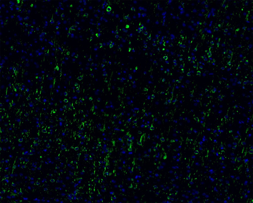 Immunofluorescence analysis of paraffin-embedded mouse brain tissue labeling CD90 / THY1 with Rabbit anti-CD90 / THY1 antibody (HA750364) at 1/400 dilution.