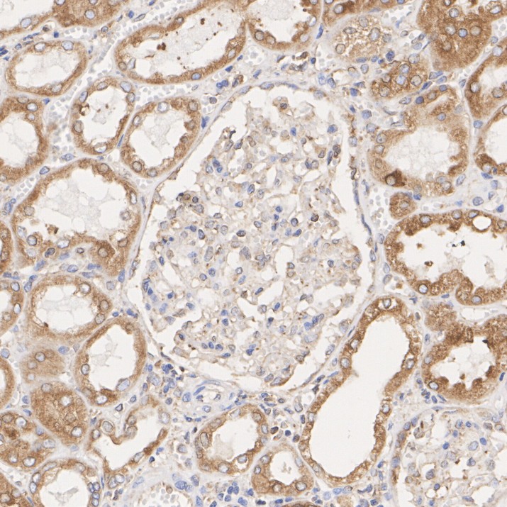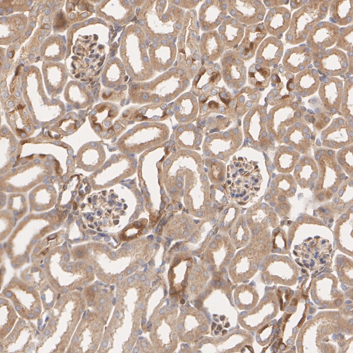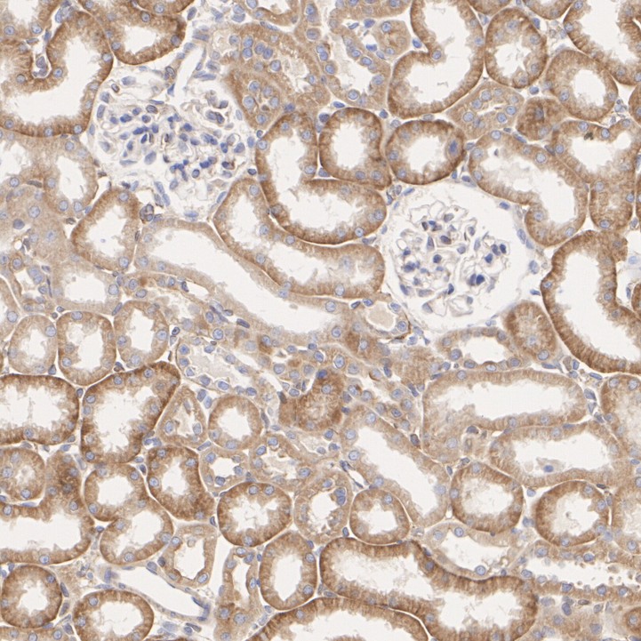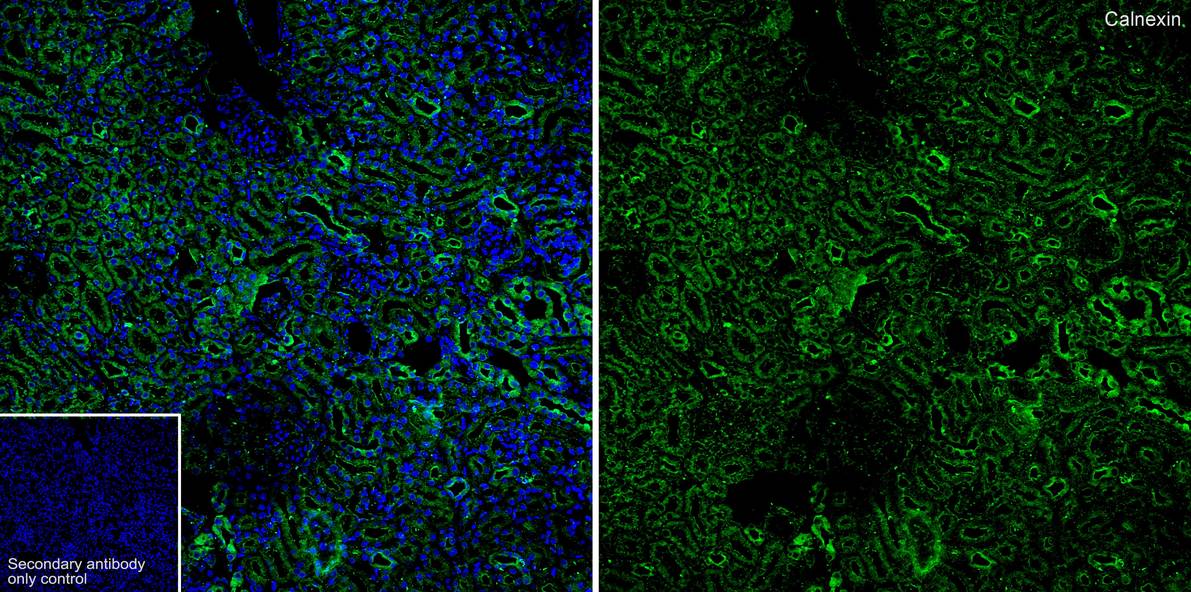 Immunohistochemical analysis of paraffin-embedded rat kidney tissue with Rabbit anti-Calnexin antibody (HA750275) at 1/1,000 dilution.