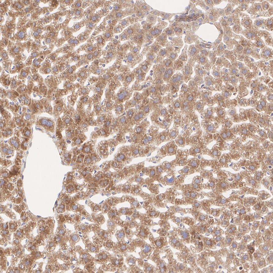 Immunohistochemical analysis of paraffin-embedded mouse liver tissue with Rabbit anti-Calnexin antibody (HA750275) at 1/1,000 dilution.