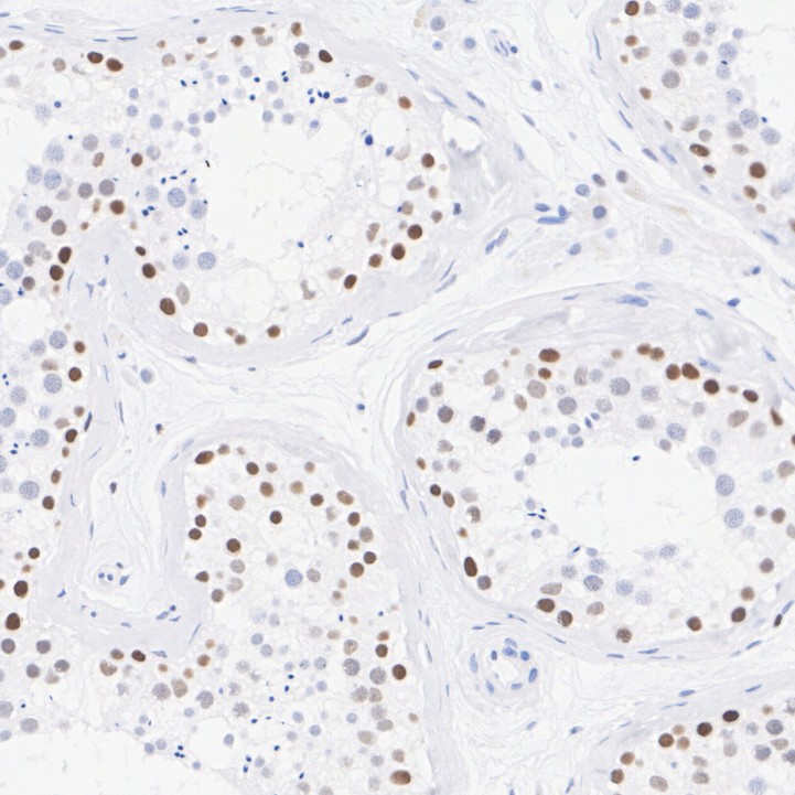 Immunohistochemical analysis of paraffin-embedded human testis tissue with Rabbit anti-Chk2 antibody (HA750223) at 1/1,000 dilution.