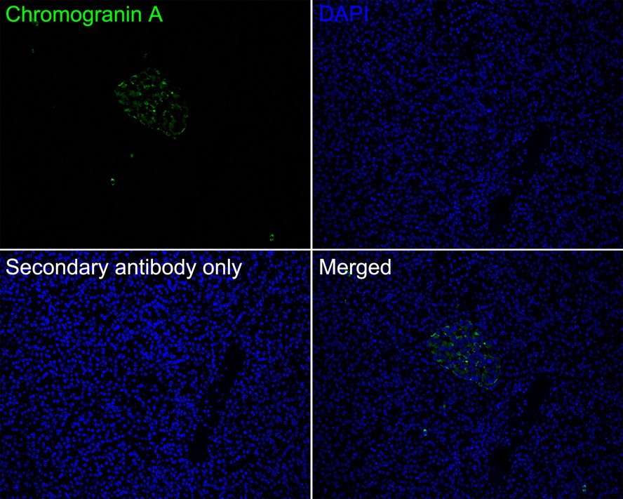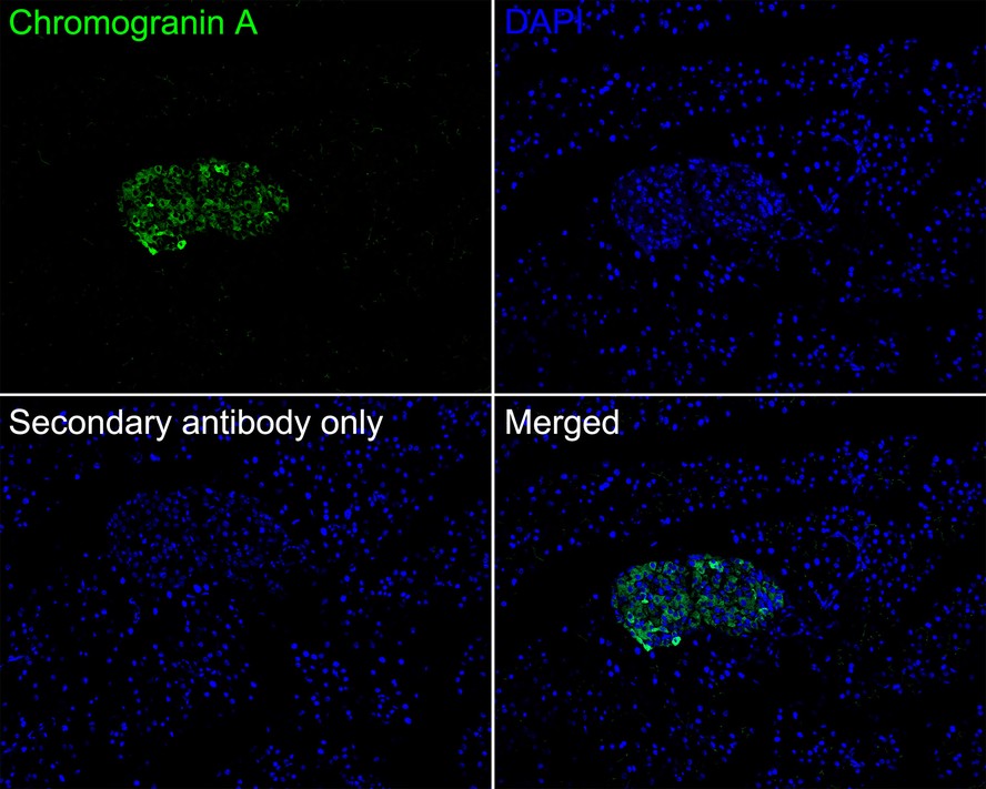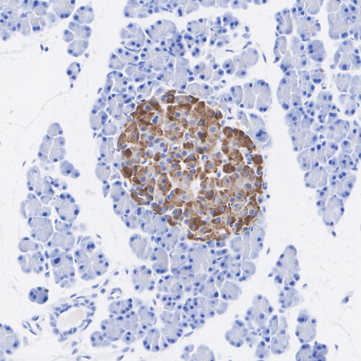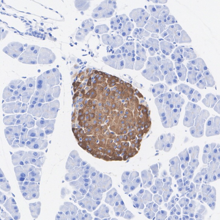 Immunohistochemical analysis of paraffin-embedded mouse pancreas tissue with Rabbit anti-Chromogranin A antibody (ET1703-08) at 1/10,000 dilution.