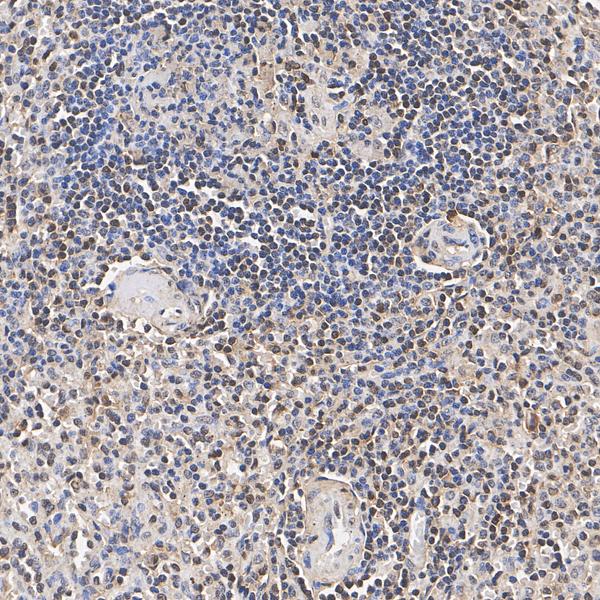 Immunohistochemical analysis of paraffin-embedded human spleen tissue with Rabbit anti-Cyclin D2 antibody (HA723857) at 1/1,1000 dilution.