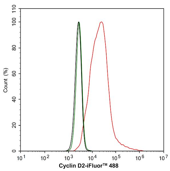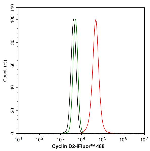 Flow cytometric analysis of HeLa cells labeling Cyclin D2.