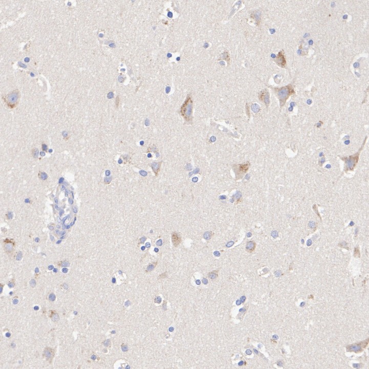 Immunohistochemical analysis of paraffin-embedded human brain tissue with Rabbit anti-DMT1 antibody (HA723078) at 1/1,000 dilution.