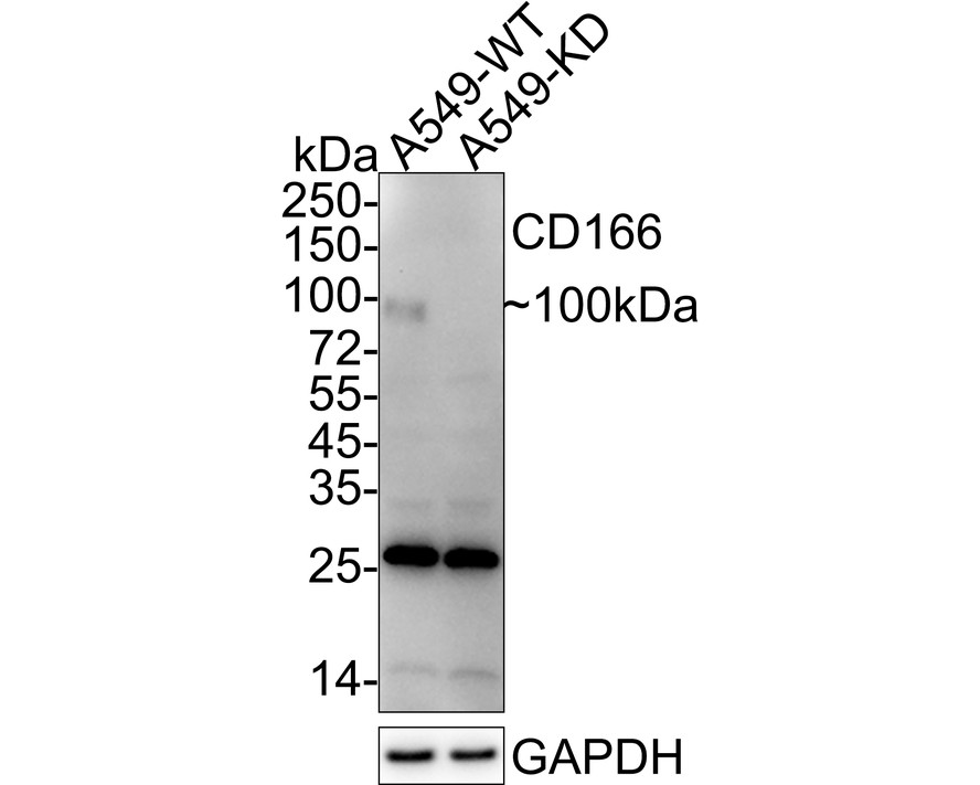 Lane 2: A549-KD CD166 cell lysate