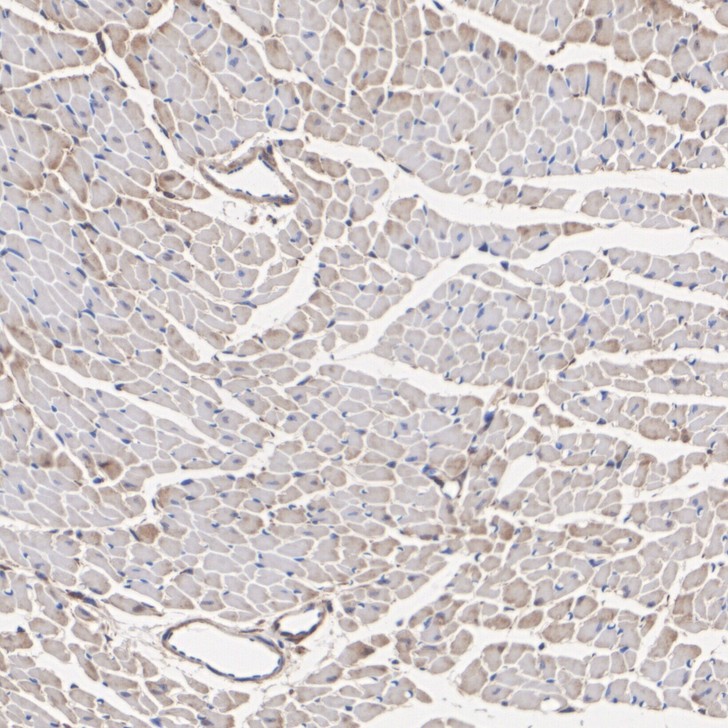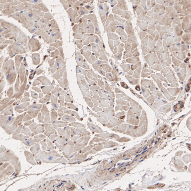 Immunohistochemical analysis of paraffin-embedded mouse heart tissue with Rabbit anti-PPM1A antibody (ER1706-37) at 1/200 dilution.