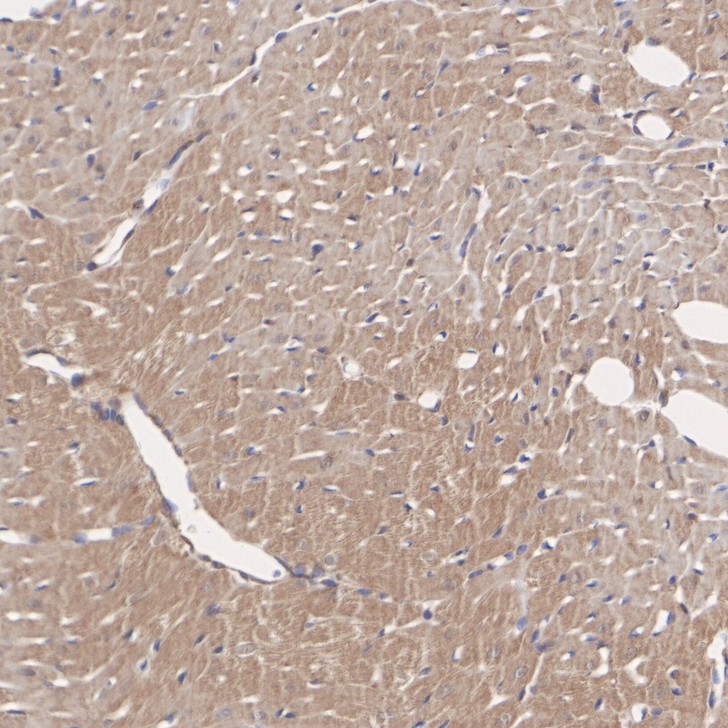Immunohistochemical analysis of paraffin-embedded rat heart tissue with Rabbit anti-PPM1A antibody (ER1706-37) at 1/200 dilution.