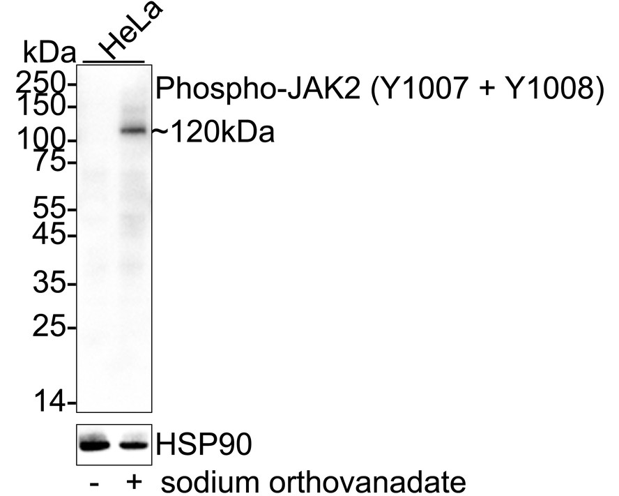 Immunocytochemistry analysis of HUVEC cells labeling JAK2 with Rabbit anti-JAK2 antibody (ER1706-58) at 1/50 dilution.