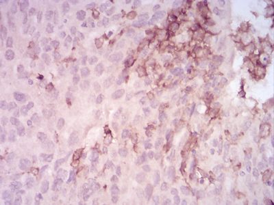 Immunohistochemical analysis of paraffin-embedded human breast carcinoma tissue using anti-MMP-14 antibody. The section was pre-treated using heat mediated antigen retrieval with Tris-EDTA buffer (pH 8.0-8.4) for 20 minutes.The tissues were blocked in 5% BSA for 30 minutes at room temperature, washed with ddH2O and PBS, and then probed with the primary antibody (ET1606-48, 1/50) for 30 minutes at room temperature. The detection was performed using an HRP conjugated compact polymer system. DAB was used as the chromogen. Tissues were counterstained with hematoxylin and mounted with DPX.