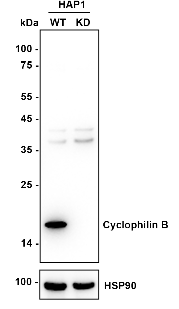 Lane 2: HAP1-Cyclophilin B KD cell lysate