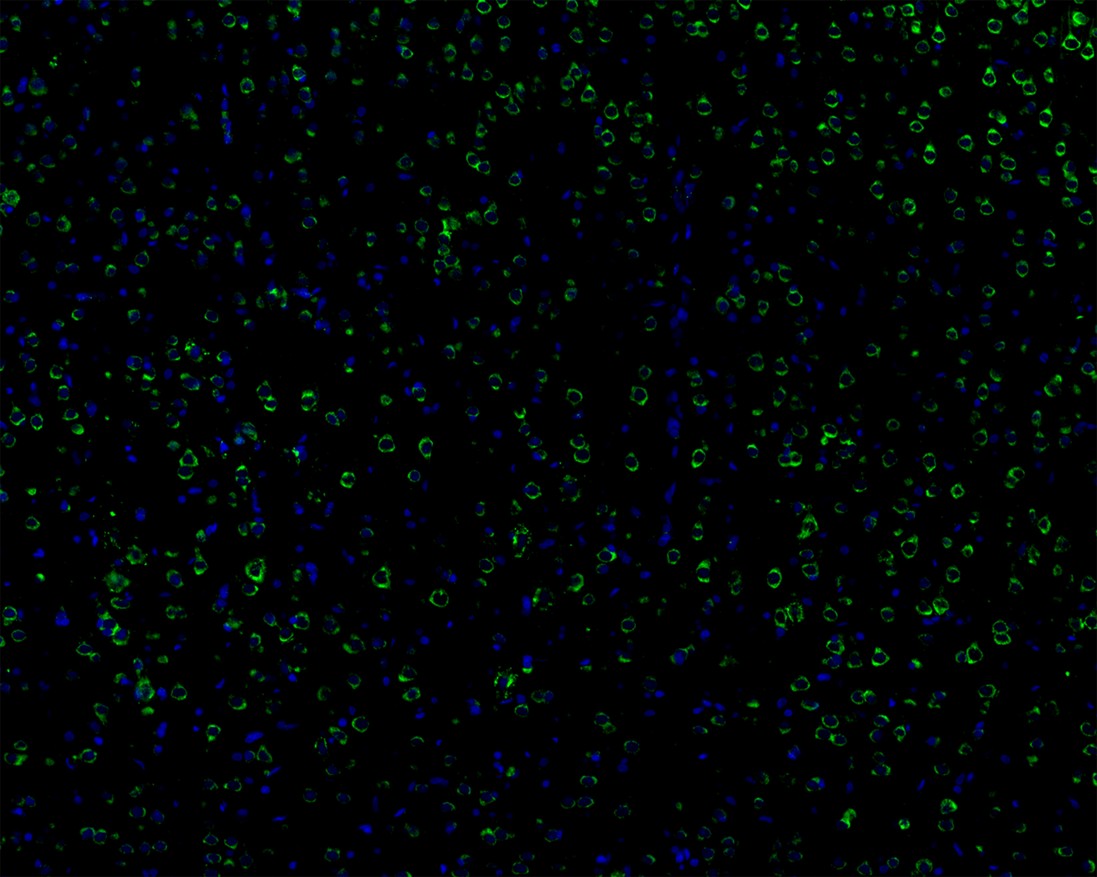 The tissues were blocked in 3% BSA for 30 minutes at room temperature, washed with PBS, and then probed with the primary antibody (HA750131, green) at 1/100 dilution overnight at 4℃, washed with PBS. Goat Anti-Rabbit IgG H&L (Alexa Fluor® 488) was used as the secondary antibody at 1/200 dilution. Nuclei were counterstained with DAPI (blue). Image acquisition was performed with KFBIO KF-FL-400 Scanner. -