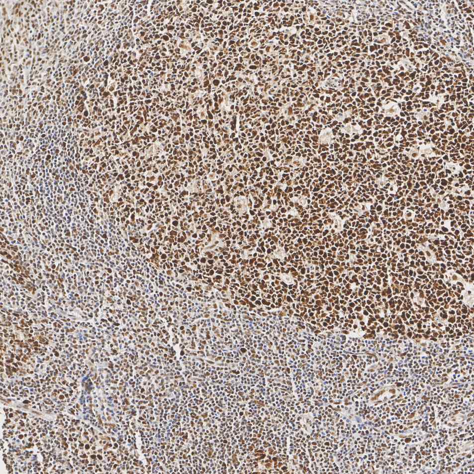 The section was pre-treated using heat mediated antigen retrieval with Tris-EDTA buffer (pH 9.0) for 20 minutes. The tissues were blocked in 1% BSA for 20 minutes at room temperature, washed with ddH2O and PBS, and then probed with the primary antibody (HA601108) at 1/1,000 dilution for 1 hour at room temperature. The detection was performed using an HRP conjugated compact polymer system. DAB was used as the chromogen. Tissues were counterstained with hematoxylin and mounted with DPX.