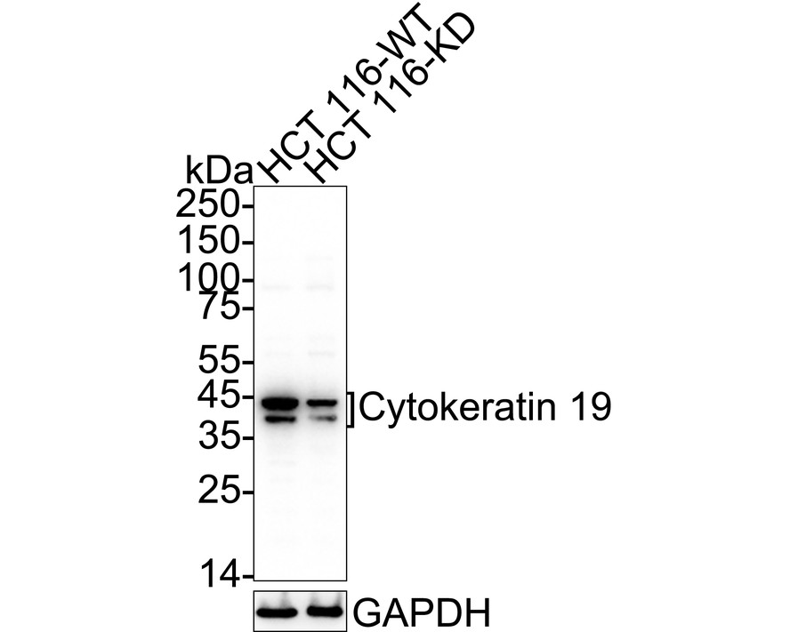 Lane 2: HCT 116-si Cytokeratin 19 cell lysate