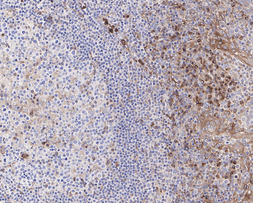Immunohistochemical analysis of paraffin-embedded human tonsil tissue with Rabbit anti-VISTA antibody (HA721452) at 1/1,000 dilution.