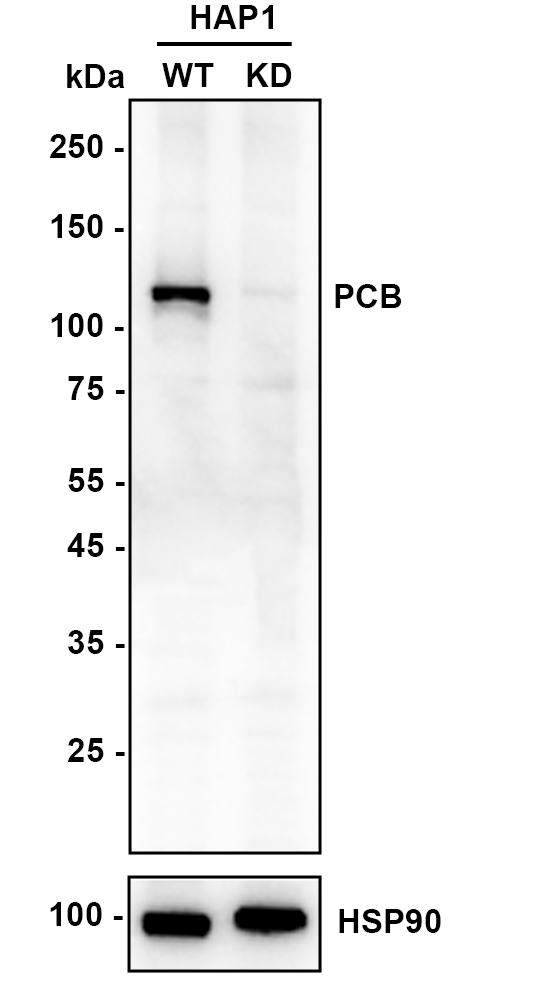Lane 2: HAP1-PCB KD cell lysate (10 µg/Lane)