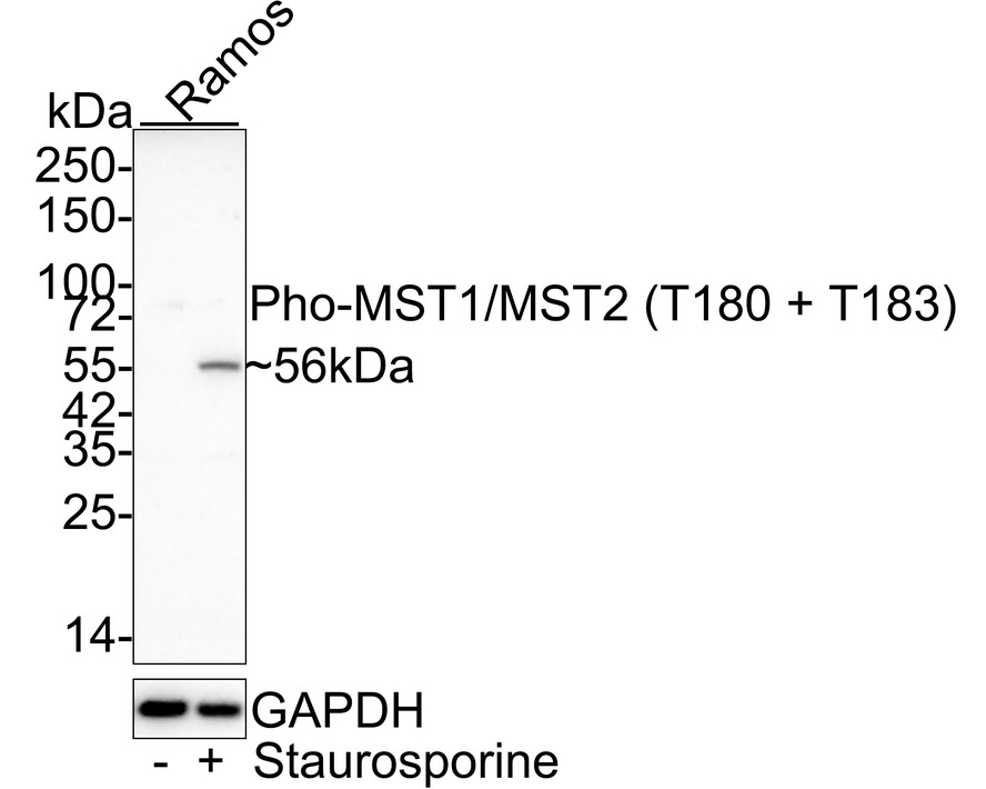 Phospho-MST1/MST2 (T180 + T183) Recombinant Rabbit Monoclonal Antibody [JE46-64]
