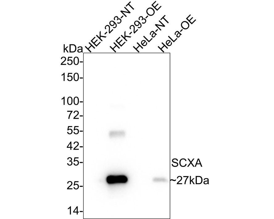 Lane 2: HEK-293-OE-SCXA cell lysate