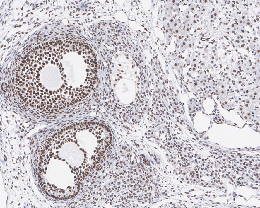 Immunohistochemical analysis of paraffin-embedded rat ovary tissue with Rabbit anti-PHF6 antibody (HA721812) at 1/1,000 dilution.