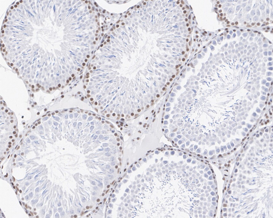 Immunohistochemical analysis of paraffin-embedded rat testis tissue with Rabbit anti-PHF6 antibody (HA721812) at 1/1,000 dilution.